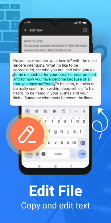 📱 The app allows seamless reading and sharing of all types of documents – DOCX, PDF, Excel, PPT, TXT, etc.! OCR Text Scanner: Scan, convert and share easily.
