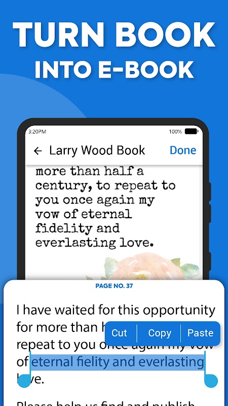 After from extracting the picture to text, users can compare it to the original image to see if it is correct. OCR scanner app helps make sure everything is correct. Text Scanner can export the extracted text as a text file or a PDF document. Pic to text feature helps save the content and share it in different formats.