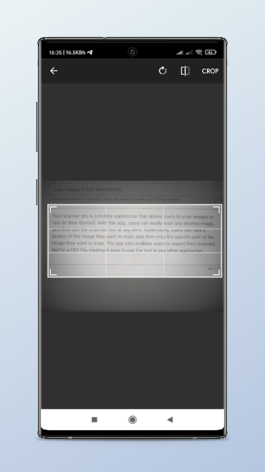 Text Scanner is a mobile application that allows users to scan images to text on their devices. With this app, users can easily scan any desired image, and then edit the scanned text at any time. Additionally, users can take a picture of the image they want to scan, and then crop the specific part of the image they want to scan. The app also enables users to export their scanned text to a PDF file, making it easy to use the text in any other application