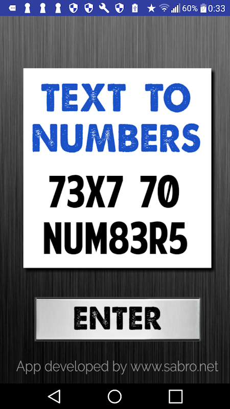 TextToNumers is a 100% Free APP that allows converting text, words, and phrases into number format, ideal to generate secure passwords with hacker style, or even to write, send or share encoded messages to your friends through whatsapp, or by email or sms.