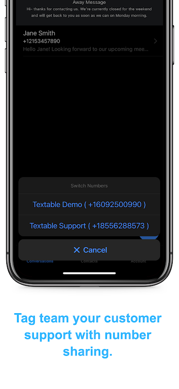 Textable allows businesses to communicate via SMS with their business number.