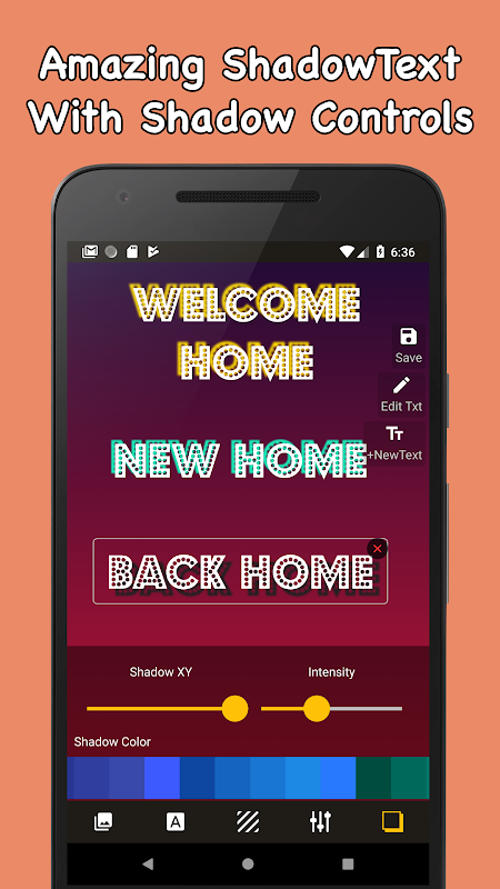 Adding stylish text on photos, great fonts, best backgrounds , Custom shadows and writing on top of your picture has never been easier. With a simple Textify text editor lets you focus on whatever you're doing with Text Art styles , a wide range of backgrounds, fonts, texture, shadow options text rotation resizing that you can customize and of course your can use your own background and also own texture for text,