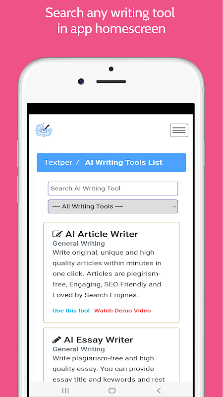 Textper is Artificial Intelligence (AI) Writing Assistant which can generate AI content. Here are some list of available writing tools in textper: