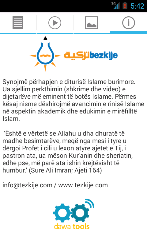 Aplikacioni 'Tezkije' ofron versionin mobil te webfaqes tezkije.com, gjithashtu duke ju informuar cdo moment per te rejat e publikuara.
