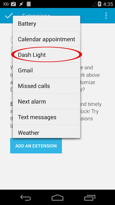 1. On your lock screen or home screen add a new widget. Pick DashClock.