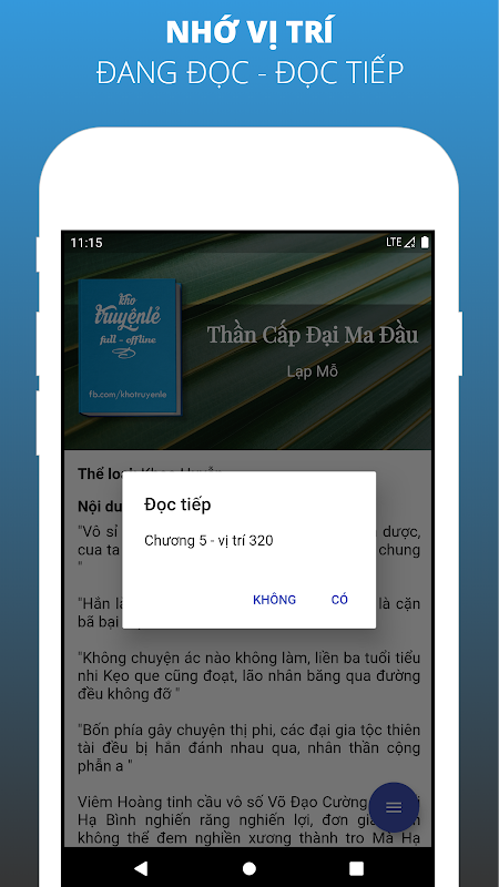 ✓ Tự động lưu vị trí đang đọc, hỗ trợ Đọc tiếp