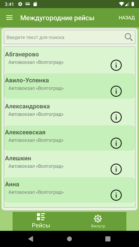 ตารางเวลารถบัสชานเมืองโวลโกกราดโดยไม่มีแผนที่และออฟไลน์