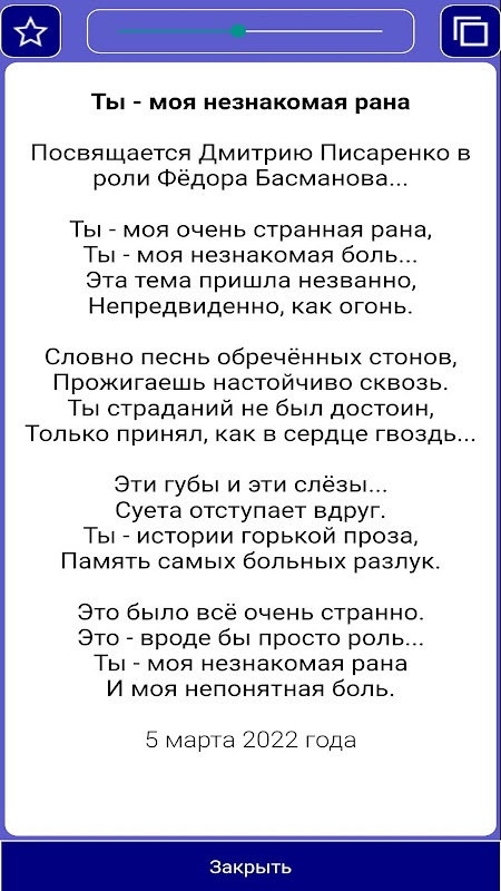 แอปพลิเคชั่นนี้มีบทกวีที่เลือกโดย Anna Sobol กวี