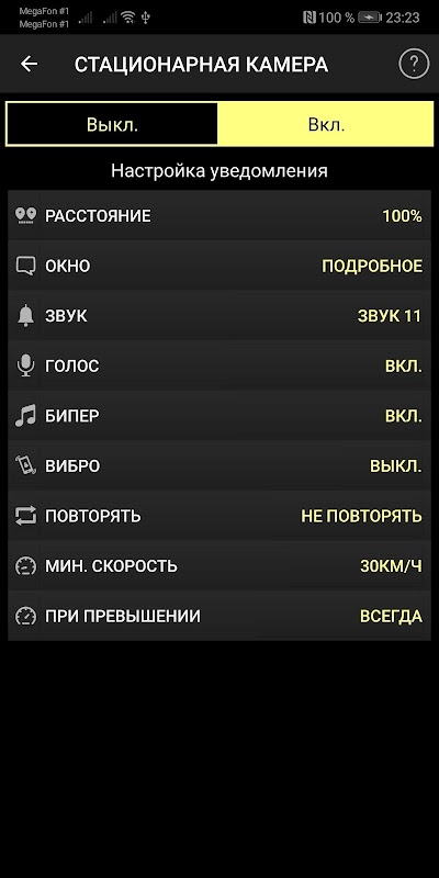 - Для каждой камеры или объекта возможна отдельная настройка звука, голосовой фразы, бипера, превышения скорости и т.п.