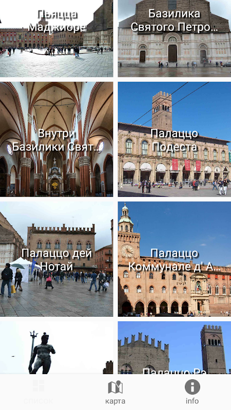มหาวิทยาลัยที่เก่าแก่ที่สุดในยุโรปเป็นอย่างแม่นยำในโบโลญญาซึ่งวันนี้เป็นเมืองหลวงของนักศึกษาประกาศตัวเองของอิตาลี ในข้อมูลที่แอพลิเคชันที่มีข้อมูลที่จำเป็นทั้งหมดเกี่ยวกับพิพิธภัณฑ์การเยี่ยมชมและการเดินทางไปยังวิหารของมาดอนน่าของนักบุญลูกา