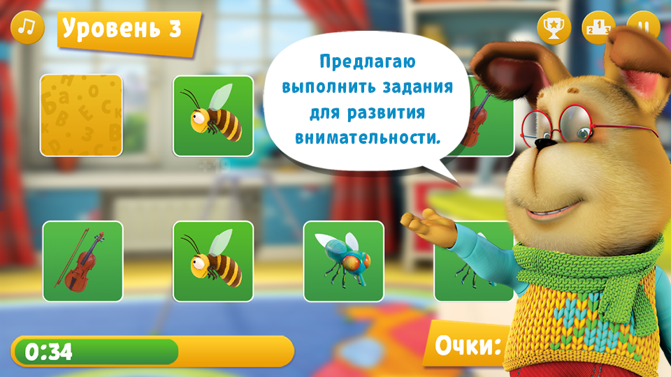 — игра «Тренировка внимания», в которой Гена Барбоскин помогает тренировать внимательность;