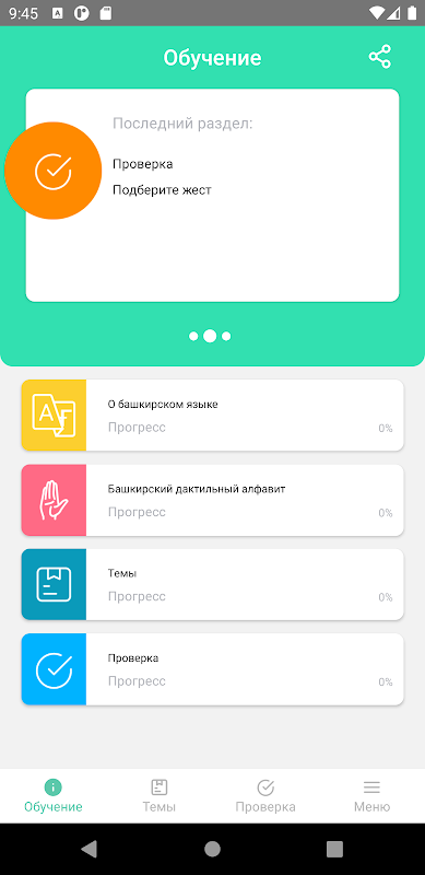 แปลและพากย์ภาษามือในบัชคีร์และรัสเซีย มีการใช้แบบฝึกหัดแบบโต้ตอบมากกว่า 40 แบบในแอปพลิเคชันเพื่อรวมเนื้อหาที่ศึกษา