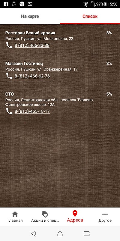 Бонусная программа Белый Кролик ресторана The White Rabbit, а также партнеров: Магазин Гостинец и СТО Тярлево. Получите карту бесплатно, копите бонусы при каждом посещении и расплачивайтесь ими вместо денег! Ваша электронная карта всегда с собой.