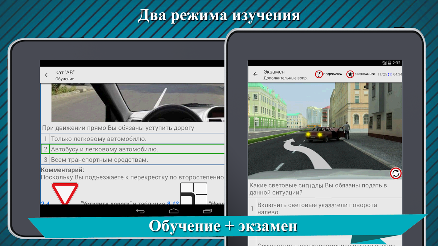 - โหมด "การเรียนรู้" สำหรับการเตรียมตัวอย่างรวดเร็วสำหรับการสอบกฎจราจร