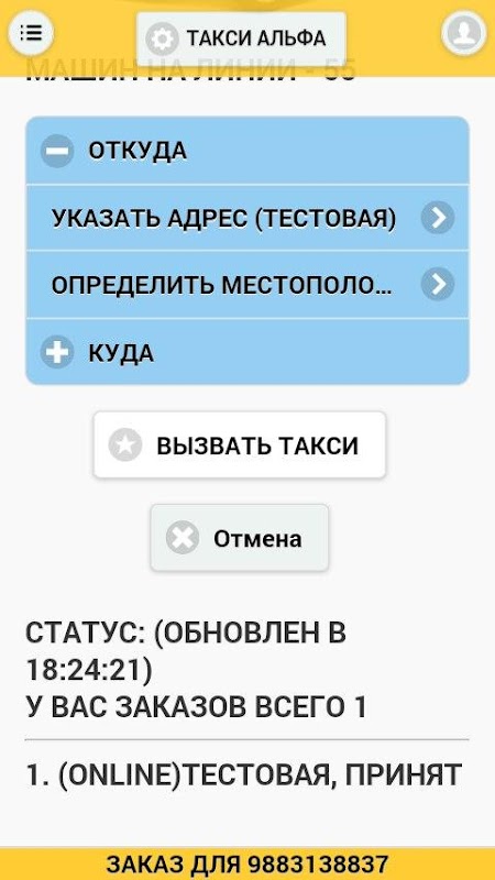 The application allows a smartphone to call your taxi in the city of Anapa
