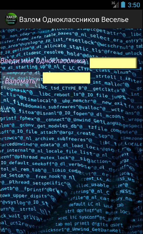 Это симулятор взлома, он имеет красивое и современное оформление и выполнен в лучших традициях хакерских программ, которыми пользуются хакеры профессионалы. Пусть твой одноклассник думает что его аккаунт, пароль и сообщения в твоих руках. Что го музыка и фотографии в твоей власти. Это приложение подходит для самых крутых розыгрышей.