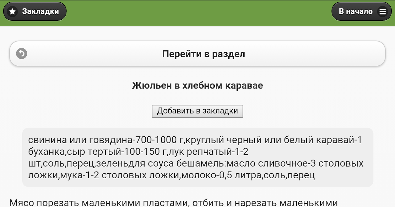 В приложении вы найдете, доступные и оригинальные рецепты домашней кухни. Понравившиеся рецепты можно сохранять в закладки и быстро обращаться к ним когда это потребуется. Если вы не умеете готовить то исправить это очень просто. В сборнике максимум информации, она поможет заполнит пробелы в базовых знаний технологии приготовления блюд. Приложение содержит как традиционные, домашние, так и самые оригинальные кулинарные рецепты разнообразных блюд, от салатов и горячего, до десертов и выпечки. Так же любители домашнего консервирования найдут лучшие рецепты заготовок.