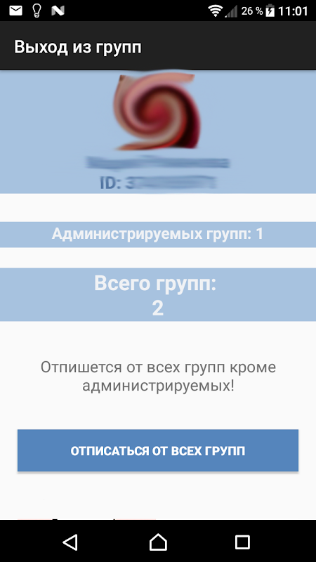 - Массовый выход (отписка) из групп ВК кроме администрируемых.