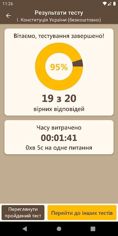 ในแอปพลิเคชันนี้คุณไม่เพียง แต่ศึกษาเนื้อหาและทำการทดสอบเท่านั้น แต่ยังสามารถดูการเปรียบเทียบผลลัพธ์ของคุณกับผลลัพธ์ของผู้ใช้รายอื่นที่อยู่ระหว่างการทดสอบ