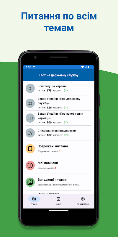 แอปนี้ไม่ได้เป็นตัวแทนของหน่วยงานรัฐบาลหรือสถาบันอย่างเป็นทางการใดๆ แอปนี้สร้างขึ้นเพื่อช่วยคุณเตรียมตัวสอบราชการในยูเครน และมีข้อมูลที่สอดคล้องกับแหล่งที่มาอย่างเป็นทางการ