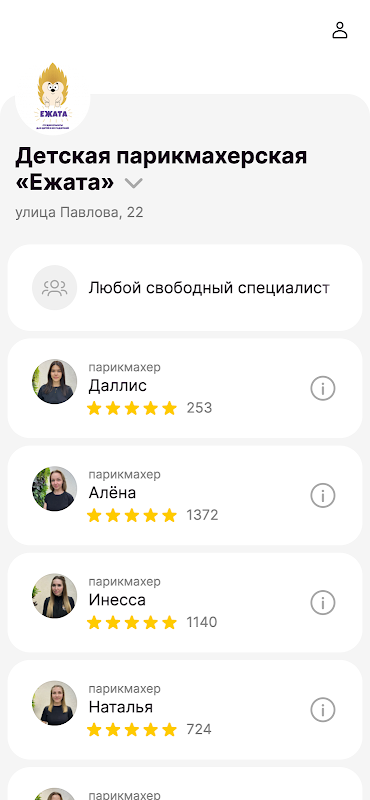 เกี่ยวกับ Детская парикмахерская «Ежата»