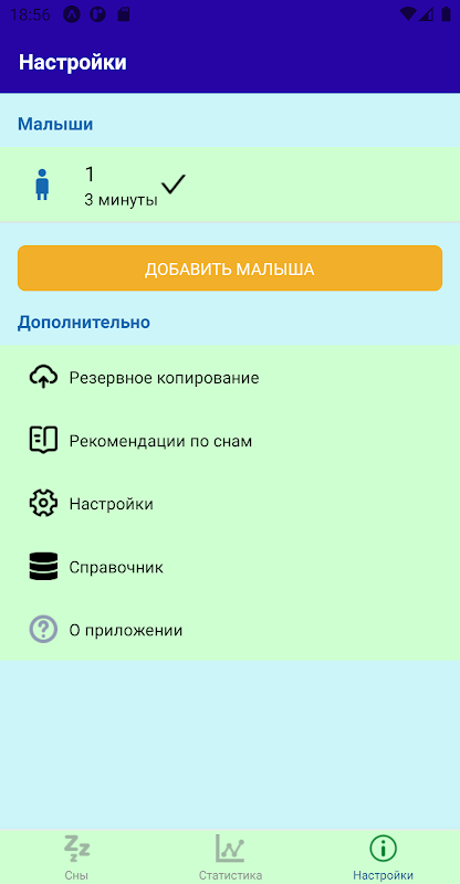 Это приложение поможет вам в ведении учета сна вашего ребенка.