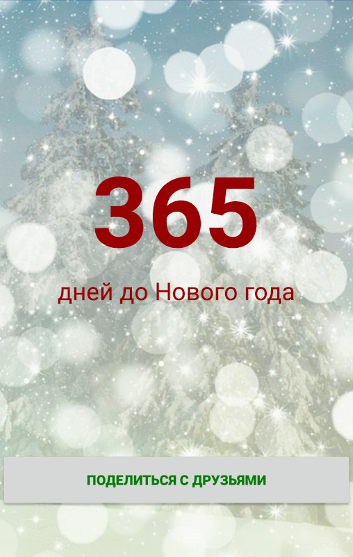 Функция "Поделиться с друзьями" позволяет отправить количество дней до Нового года друзьям всеми способами, которые поддерживает Ваше устройство!