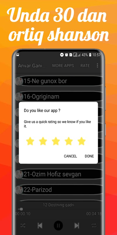 Siz musiqani internetsiz tinglashingiz mumkin + ilovadan chiqishingiz yoki telefonni qulflashingiz mumkin va musiqa hali ijro etilmoqda.