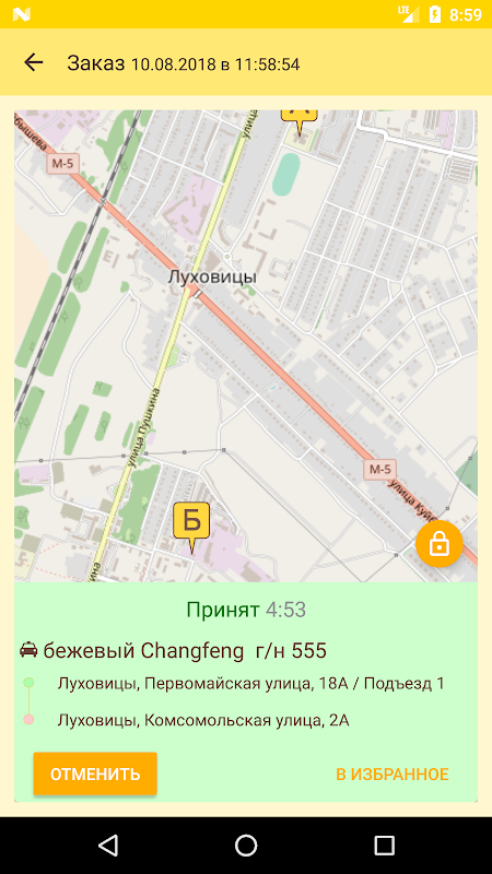 Удобный интерфейс позволяет заказать такси быстро.