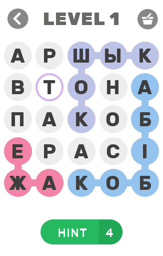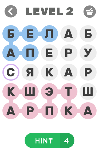 Дадзеная гульня мае 40 узроўняў, з паступовым павышэннем ўзроўню складанасці. Наша гульня з самага пачатку задае няпросты, але цікавы тэмп. Пад час праходжання гульні колькасць слоў , якiя неабходна разгадаць, будзе павялічвацца. Павялiчваюцца і памеры поля. З павышэннем узроуню, адгадваць словы становіцца ўсё складаней і складаней. Калі вы не можаце адгадаць слова, не сумуйце, бо вы заўсёды можаце "ўзяць" падказку(яна падкажа вам літары ў схаваным слове).