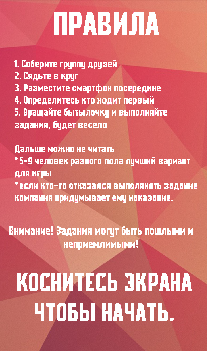 ขวดงานเป็นเกมสำหรับงานปาร์ตี้หรือเพียงเพื่อ บริษัท สนุก ๆ ของเพื่อน มาสนุกกับการเล่นกับเพื่อน ๆ กันดีกว่า คำถามที่ไม่เหมาะสมจำนวนมากและงานที่สนุกสนานจะทำให้คุณและเพื่อน ๆ เรารับประกันว่าอารมณ์ที่ดีและความประทับใจจากพายุในการใช้แอปพลิเคชันของเรา