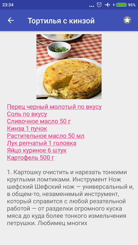 - Список необходимых для приготовления блюда ингредиентов, их количество и пропорции;