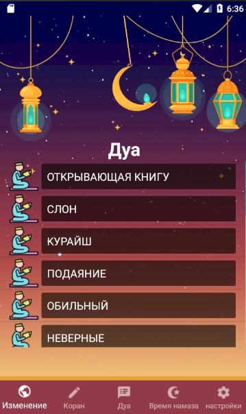 Время чтения молитв (фаджр, зухр, аср, маргиб, иша).