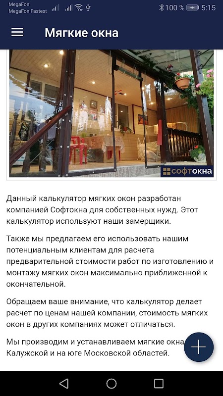 เกี่ยวกับ Калькулятор мягких окон