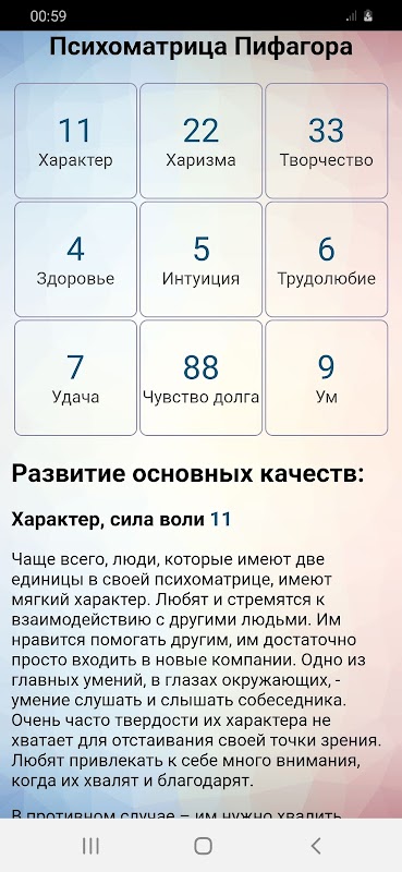 ข้อมูล Квадрат Пифагора, Психоматрица APK