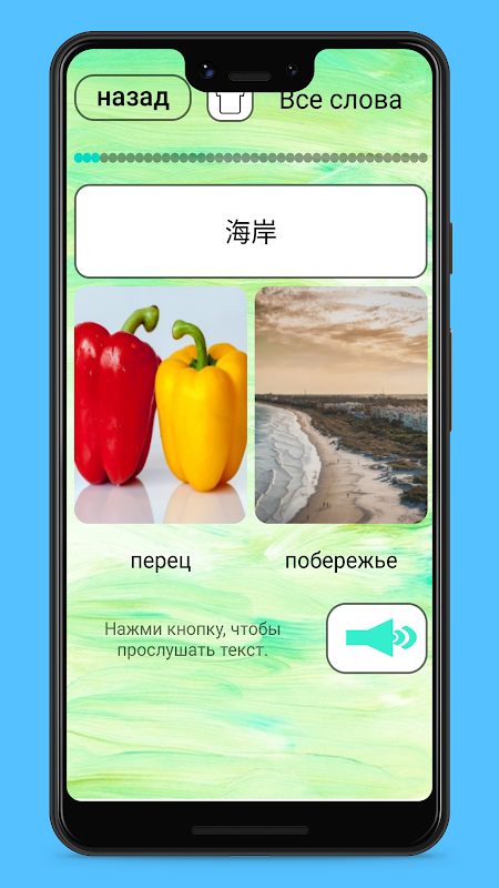 แอพนี้มีแฟลชการ์ดสำหรับเรียนรู้คำศัพท์ ตัวอย่างการใช้คำในบริบท และแบบทดสอบคำศัพท์ คุณสามารถฝึกเขียนคำศัพท์ภาษาจีนโดยใช้แป้นพิมพ์ ซ่อนหรือไม่ซ่อนคำศัพท์ที่คุณกำลังเรียนรู้ การ์ดหน่วยความจำสีสันสดใสและการแสดงเสียงเพื่อการจดจำคำศัพท์ที่ดีขึ้น