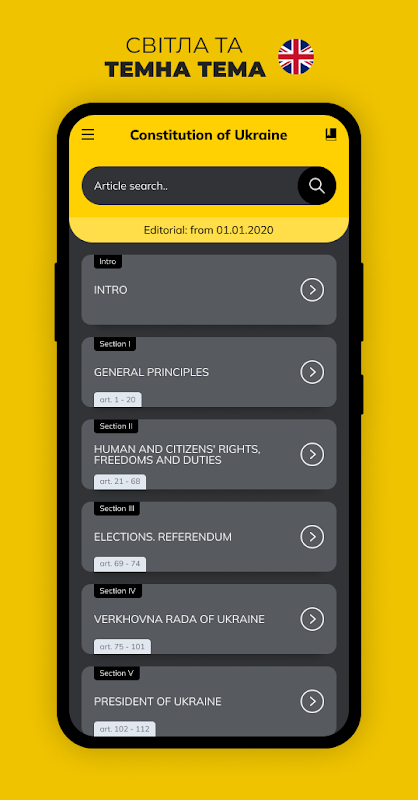 แอปพลิเคชั่นมือถือรัฐธรรมนูญของประเทศยูเครนซึ่งอยู่ในมือเสมอ