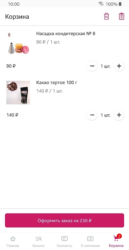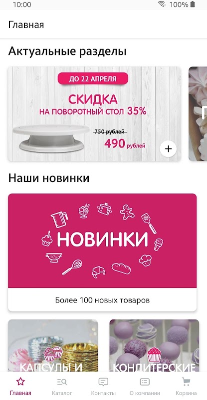 แอปพลิเคชั่นมี 24 หมวดหมู่: สี, ตกแต่ง, ส่วนผสม, ช็อคโกแลตและโกโก้, สีเหลืองอ่อนและมาร์ซิแพน, เครื่องมือ, กระเป๋าและหัวฉีด, จานอบและพรม, แคปซูลและรูปแบบ, กล่องและบรรจุภัณฑ์ทุกอย่างสำหรับการพิมพ์อาหาร