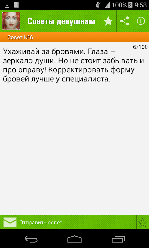 Понравившиеся советы можно сохранить в избранном или поделиться с подругами смской или в соцсетях.