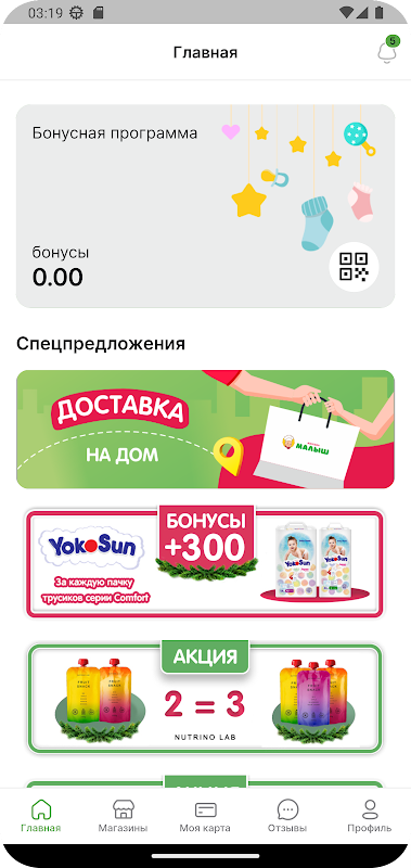 รับโบนัสเพิ่มเติมสำหรับการซื้อสินค้าในร้านค้าของเครือข่าย "Malysh"! เพียงลงทะเบียนและเริ่มสะสมคะแนนที่คุณสามารถใช้ชำระได้สูงสุด 100% ของมูลค่าสินค้า