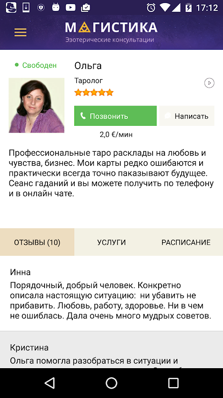 - มากกว่า 30 นักโหราศาสตร์ที่มีประสบการณ์และเป็นมืออาชีพ tarologov, clairvoyants