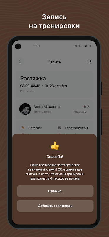 แอปพลิเคชั่นมือถือสำหรับลูกค้าของฟิตเนสคลับและสตูดิโอกีฬา