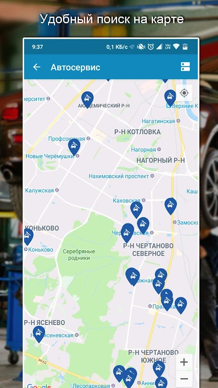 แอพลิเคชันสำหรับการค้นหาบริการรถยนต์ที่เชื่อถือได้ที่ใกล้ที่สุดในมอสโกและภูมิภาค