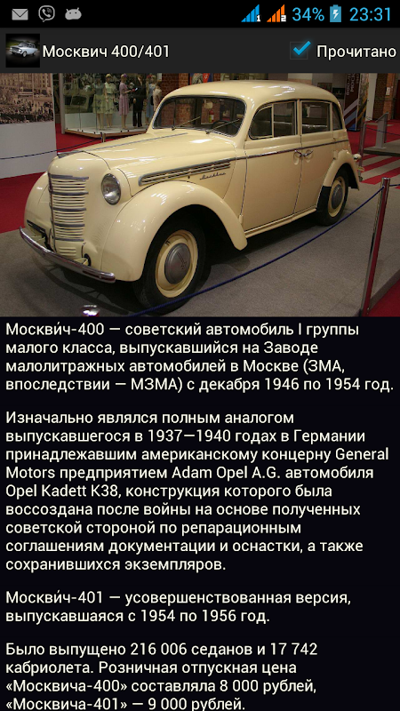 Это простой в использовании и абсолютно бесплатный справочник по моделям Москвич (АЗЛК, МЗМА, КИМ) которые когда либо выпускались. История этих автомобилей уходит почти на 90 лет в прошлое и включает в себя очень разнообразные автомобили (например народные малолитражки или спортивные болиды).