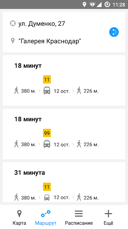 Приложение позволяет проложить маршрут общественным транспортом в Краснодаре.