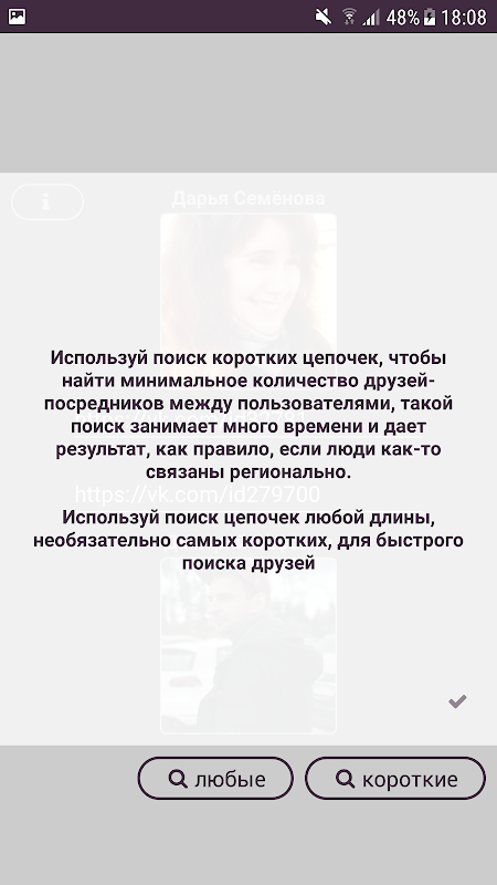 С помощью этого приложения ты можешь найти цепочки знакомых между любыми пользователями Вконтакте. Допустим, ты хочешь найти знакомых с Васей Пупкиным, приложение покажет тебе твоего друга Петю,который знает Аню, которая знает этого Васю.