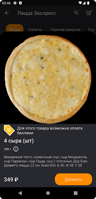 ดูราคาปัจจุบัน คำอธิบาย และภาพถ่ายที่มีสีสันของอาหาร ค้นหาขนาดชิ้นส่วนที่แน่นอน ไม่ต้องนับแคลอรีอีกต่อไป เพราะพร้อมแล้วสำหรับคุณ ทุกอย่างอยู่ที่นี่และอยู่ในมือเสมอ พิซซ่าเอ็กซ์เพรสสะดวก