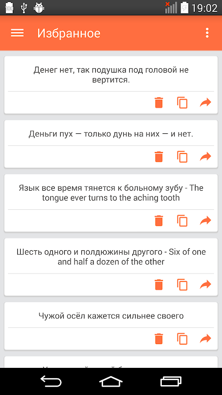 В приложении удобная навигация. Пословицы и поговорки разбиты на категории по тематике и происхождению. Присутствует поиск. В данном приложении предусмотрена возможность добавить любимые пословицы и поговорки в избранное, поделиться с друзьями по почте, смс или соцсети, а так же скопировать. Присутствует раздел "Мои пословицы и поговорки" в который вы можете добавлять пословицы и поговорки которых нет в базе. Так же есть возможность установить закладку на определенной пословице или поговорке, что бы затем вернуться к чтению с того же места.
