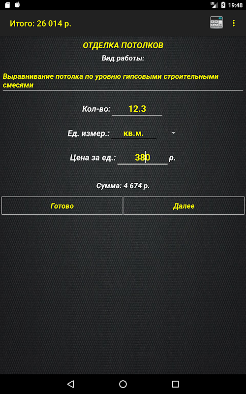 app ที่ช่วยให้คุณได้อย่างรวดเร็วสร้างประมาณการสำหรับการทำงานการตกแต่ง คุณสามารถเพิ่มและลบงานและแก้ไขราคา ในการประมาณการสามารถตั้งค่าอัตราส่วนหรือเปอร์เซ็นต์