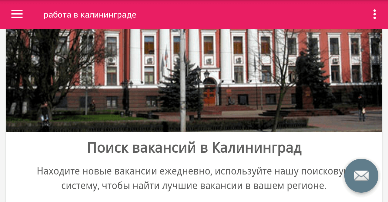 Находите миллионы вакансий из тысяч корпоративных сайтов, порталов по поиску работы и газет калининграде, используя всего одну поисковую форму. Используя портал Работа в калининграде, вы с легкостью найдете нужные вакансии в калининграде, России, ищу работу